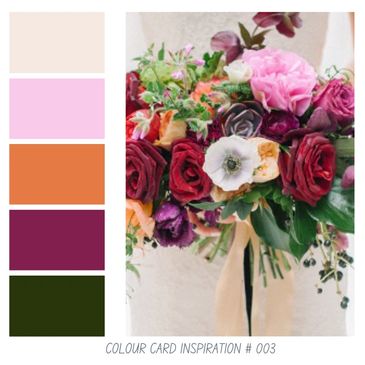 Choosing a colour scheme can be complex. That's why I've created a set of Colour Inspiration Cards. These curated palettes showcase different floral shades and how they can beautifully enhance your preferred style. Whether you're drawn to soft and romantic pastels or bold and vibrant hues, these cards can help you find the perfect aesthetic for the wedding or funeral.